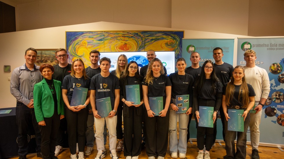 V torek, 16. decembra 2025, se je v šolski knjižnici Srednje prometne šole Maribor odvil tradicionalni Erasmus+ dogodek z naslovom Naše mednarodne izkušnje. Udeležili so se ga dijaki in dijakinje, zaposleni in starši, predstavniki partnerske šole iz Zagreba ter širša javnost. Dijaki in dijakinje zaključnih letnikov programov Logistični tehnik in Tehnik varovanja Srednje prometne šole Maribor, ki so se v poletnih in jesenskih mesecih preteklega leta udeležili mobilnosti na partnerskih šolah na Finskem in Češkem, so predstavili svoje vtise, izkušnje in nova spoznanja. V okviru raznolikih programov mobilnosti, ki so potekali v šolah, na terenu in v podjetjih, so pridobili dragocen vpogled v delovne procese ter skozi praktično delo razvijali svoje strokovne veščine. Hkrati so spoznavali tujo kulturo, jezik in okolje ter krepili svoje tujejezične in medkulturne komunikacijske spretnosti. Dogodek je zaokrožila slovesna podelitev Potrdil o mobilnosti Europass, ki potrjujejo znanja in spretnosti, pridobljene med praktičnim usposabljanjem v tujini.